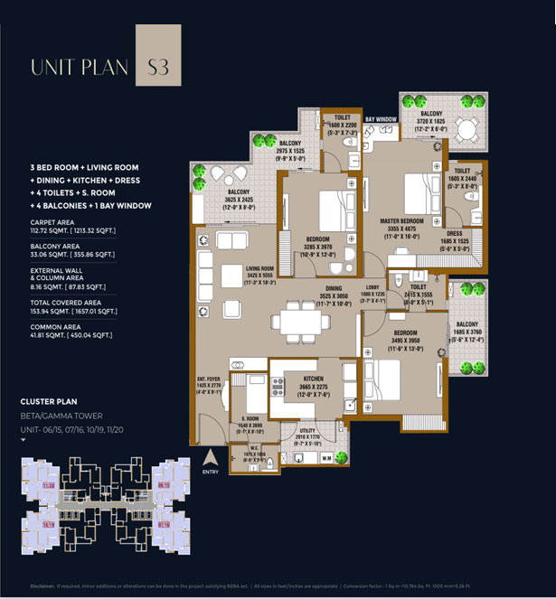 | 3 BHK + 3 TOI+ STORE | 1600 Sq.Ft. | ₹ On Request |